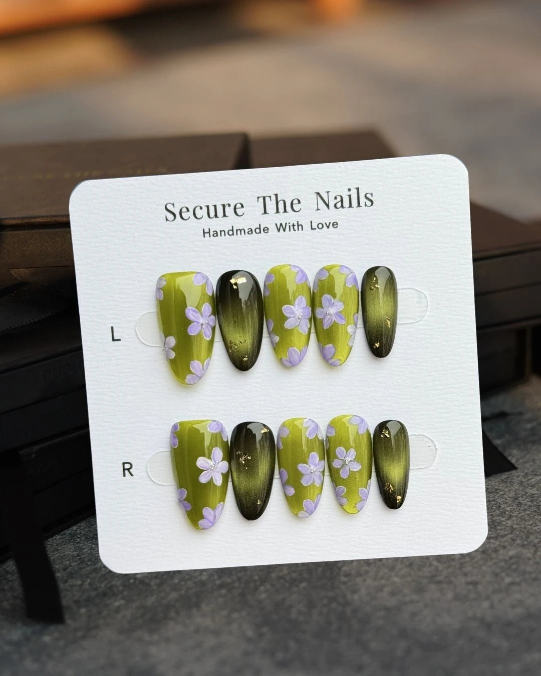 Every Secure The Nails set is 100% handmade by our in-house artists with salon-grade gel. Each size (XS–L) comes with a full set of 10 nails.