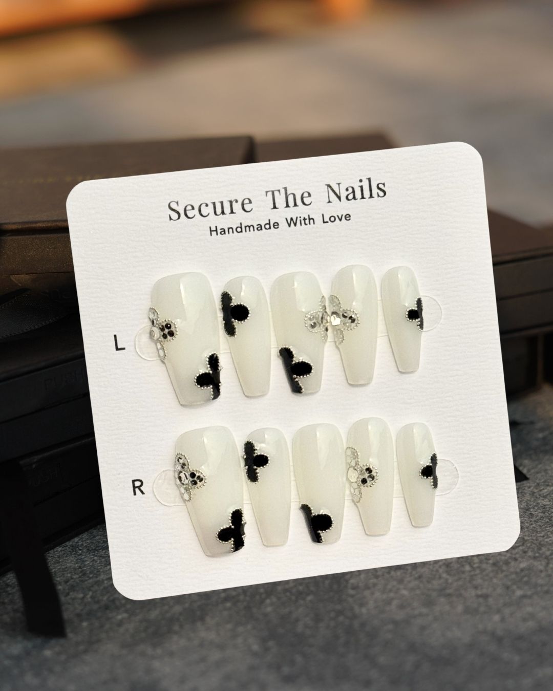 Chaque ensemble Secure The Nails est 100 % fait à la main par nos artistes internes avec du gel de qualité salon. Chaque taille (TP–G) est livrée avec un ensemble complet de 10 ongles.
