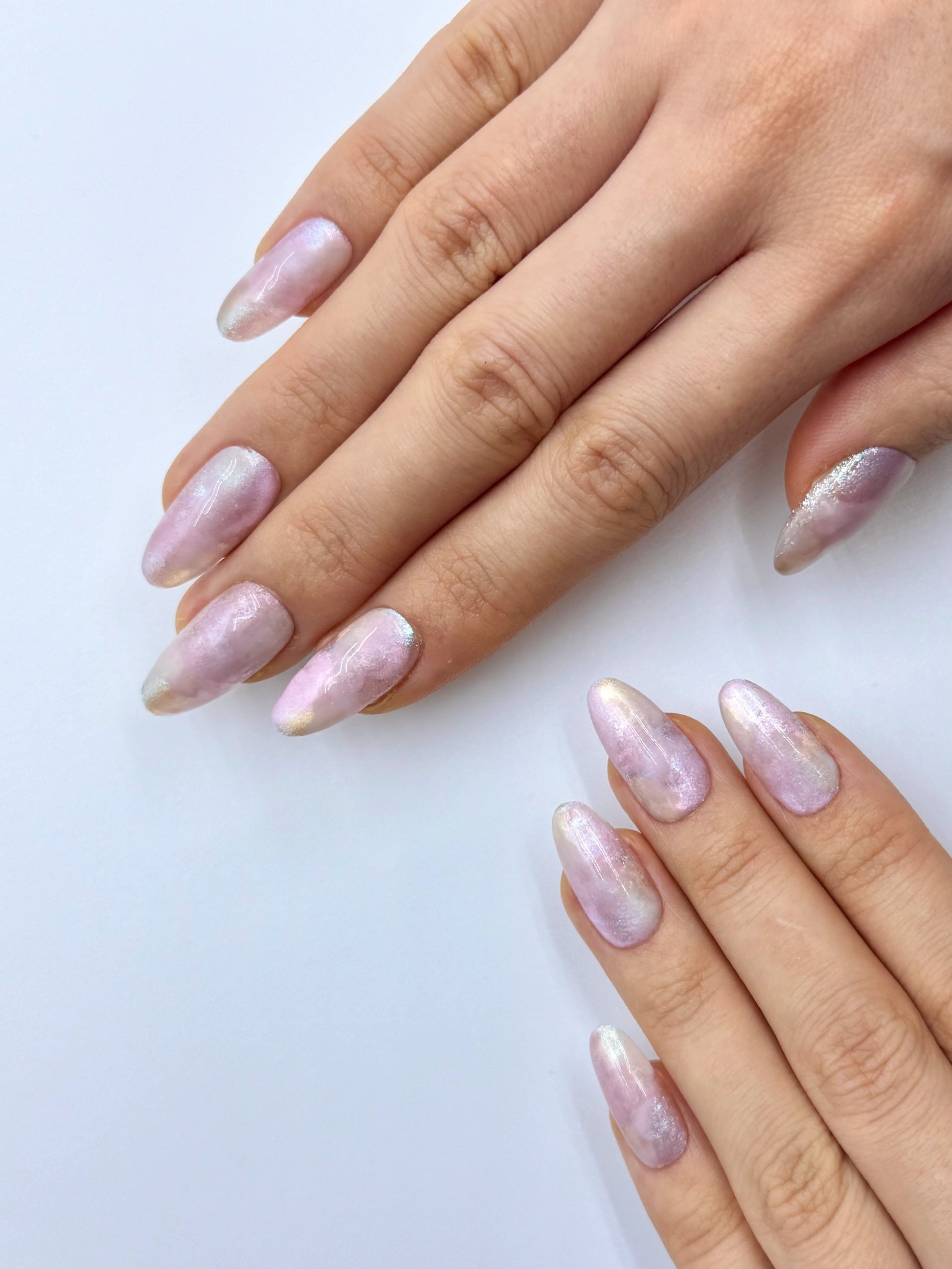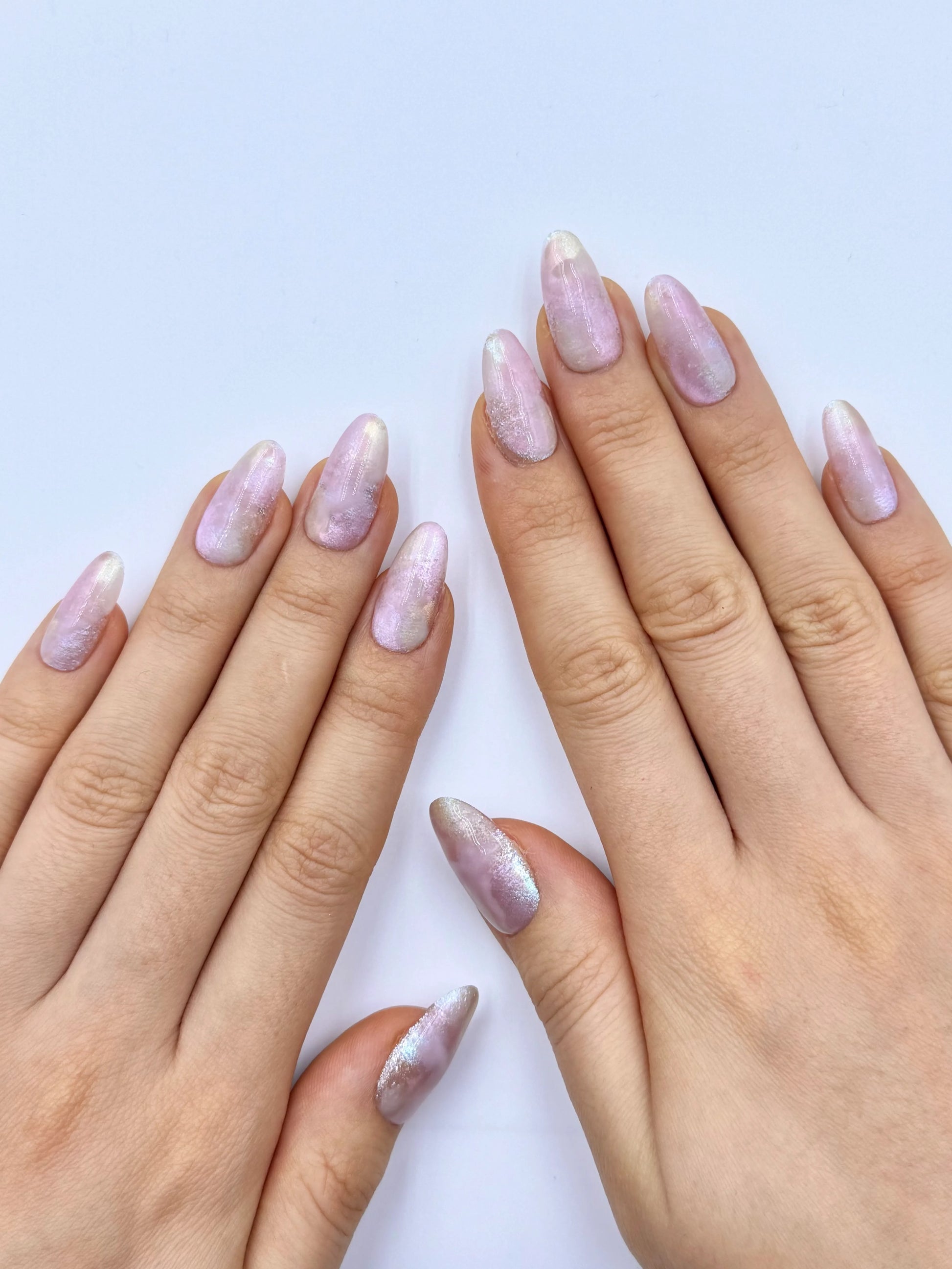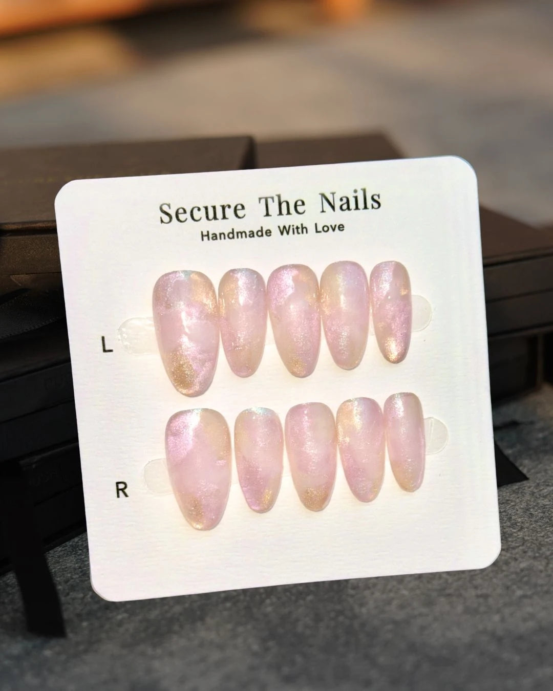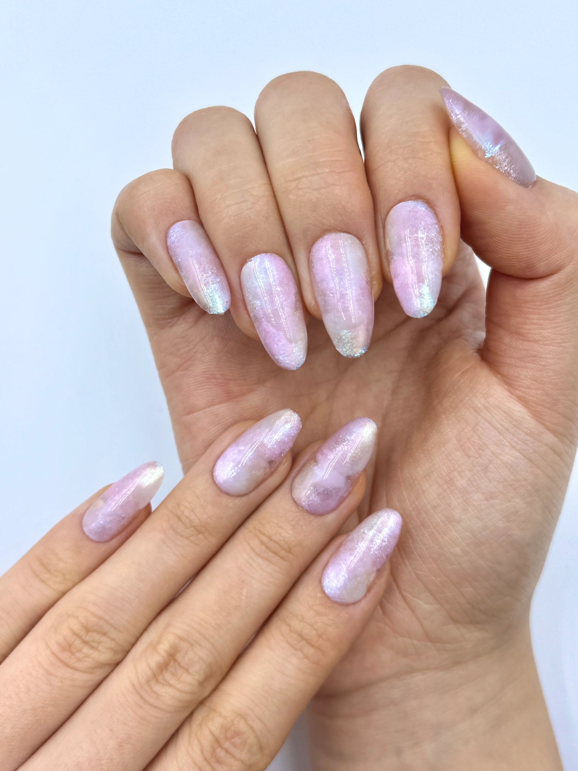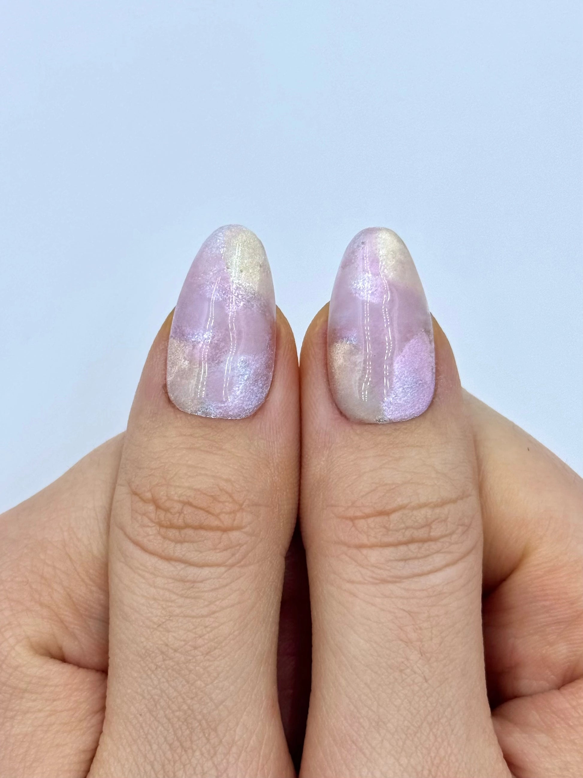 Rêveur et romantique, Pink Sunset présente un mélange unique d'aquarelle dans des teintes lumineuses de rose blush, d'or chaud et d'œil-de-chat bleu iridescent. Les couleurs se fondent harmonieusement dans une base blanche translucide, capturant un moment de coucher de soleil au bout de vos doigts.